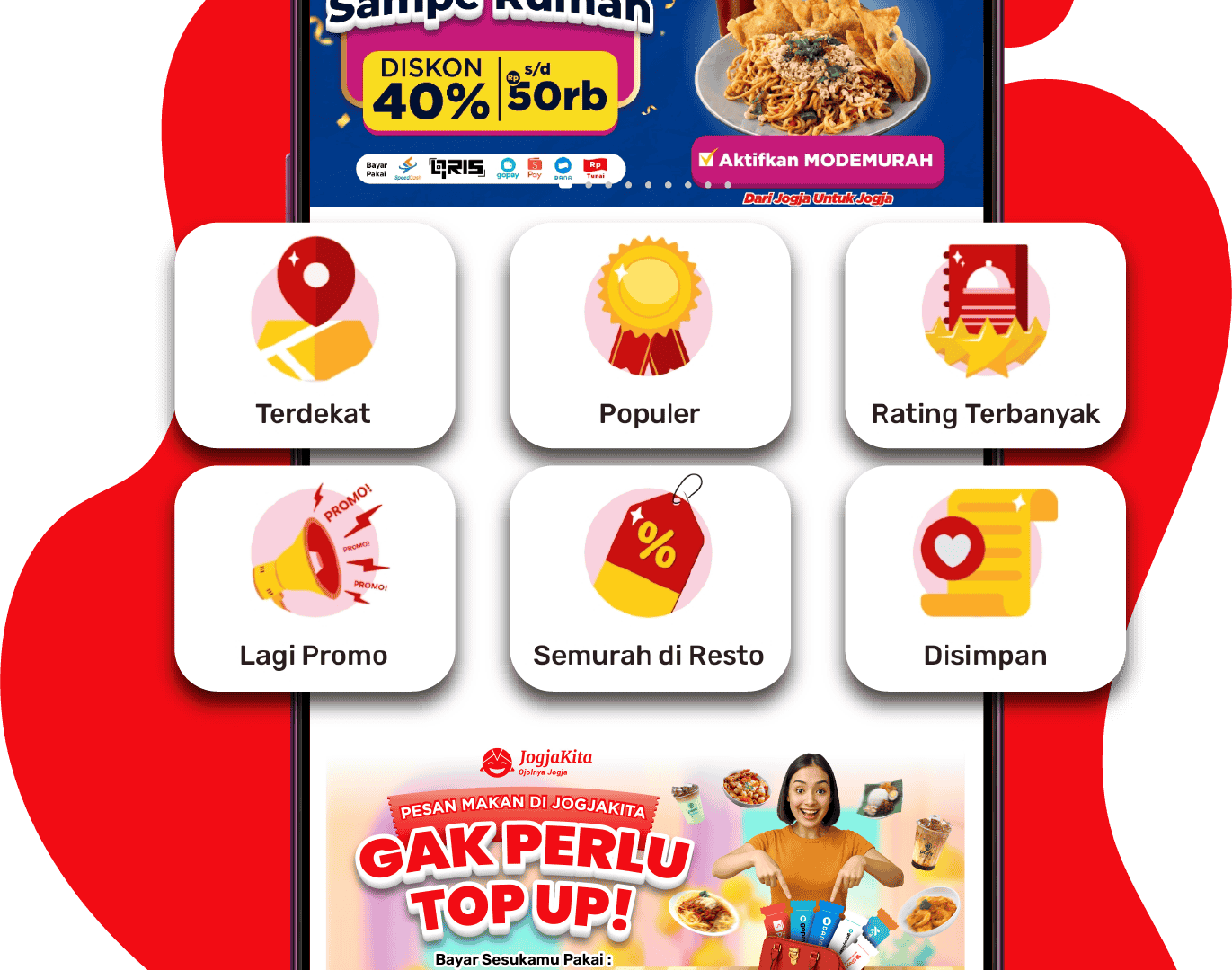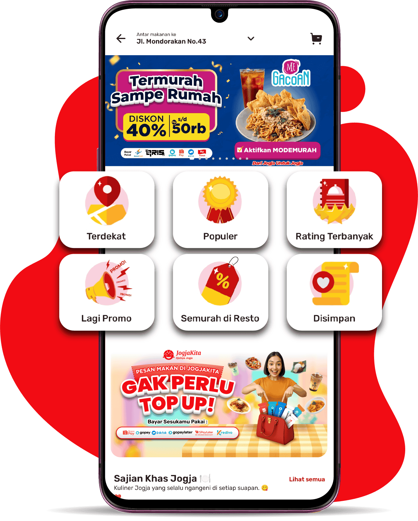 Tampilan aplikasi dengan menonjolkan resto2 populer Jogja@2x